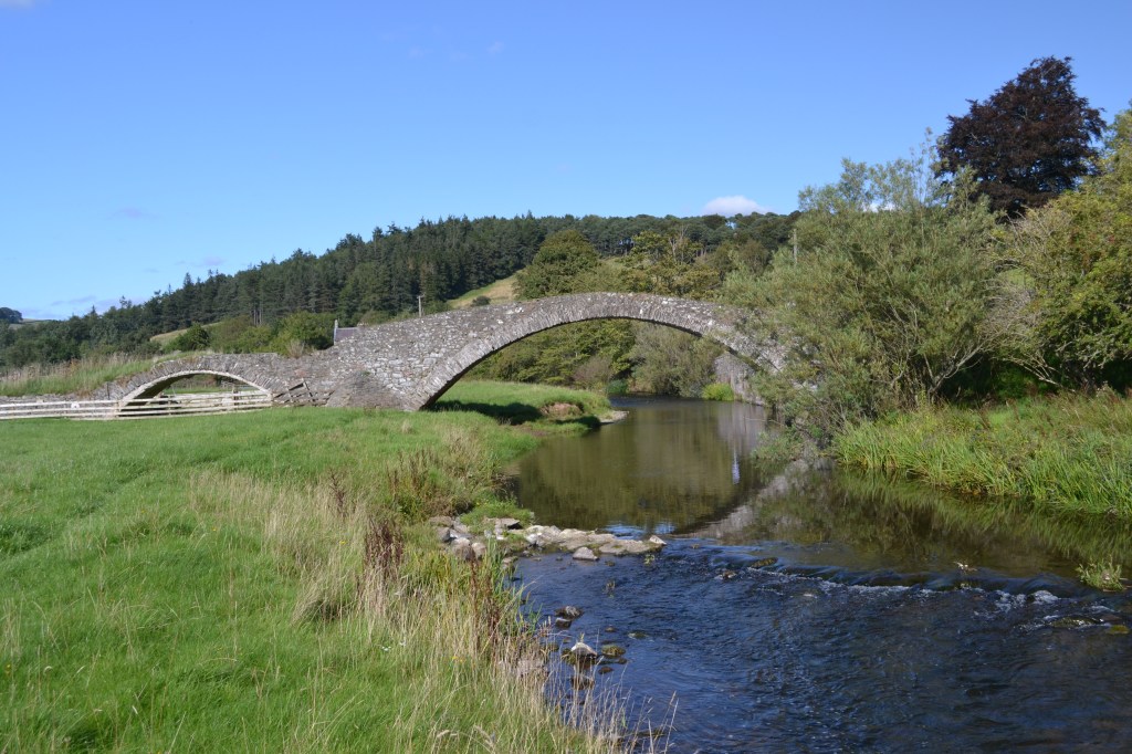 Packhorse Bridge, also known as a subscription bridge, built in 1654-5 which allowed burdened horses to cross safely. It was built to link the old 17th century link with the old kirk and helped give Stow its early prosperity.